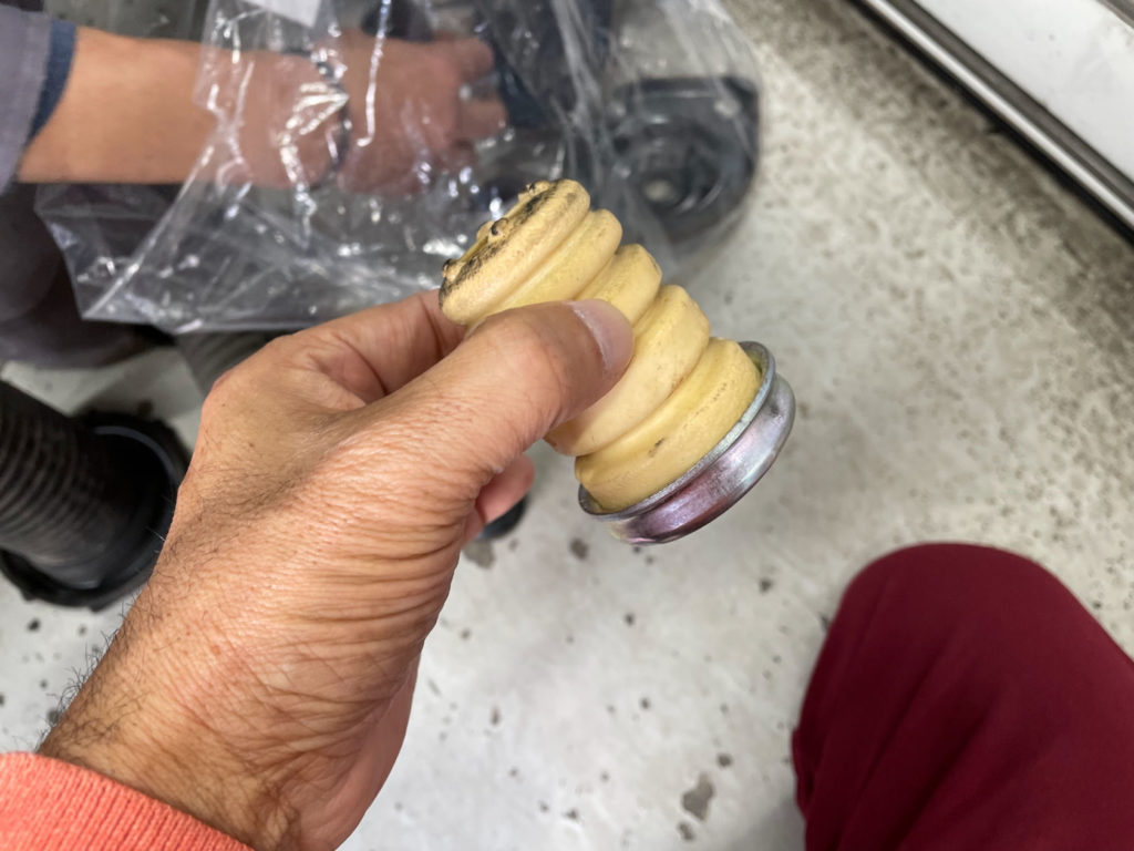 では乗ってみてどうなったか。画像キャプションに書いたように、ブッシュ類の劣化は意外と少なかった。正直交換したところで乗り味に変化があるのか、走り出すまでは疑っていたというのが本音。しかし変化がないわけではなかった。基本的にはフロントの時と変化の本質は同じ。仙台市郊外のひび割れ、えぐれ、波打ちなどが連続する荒れた舗装路で変化が際立つ。とにかくそれら舗装路からの「よろしくない入力」を喰らってからの振動、シャシーやボディの共振の収束が速い!特に運転手の肩甲骨あたりの隔壁付近から時折聞こえた「きゅるきゅる」とも「きぃきぃ」とも言えるピッチの高い共振ノイズが消えた。予想していたとは言え素晴らしい。
