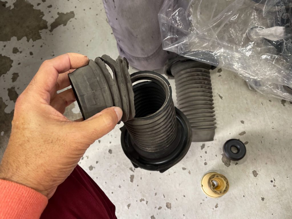 自分でタイヤ交換してたらブーツがズダボロでびっくり!ちょうどハンドルセンターが微妙にズレていたので、その修正と同時に足周り消耗品(ゴムブッシュ類)を全交換してリフレッシュしたら大勝利だった。路面からの入力の丸め方はより強力に、収束は速くなった。ドライになったと言えなくもないが、これが本来の足さばきだったのかぁ……という、ある種の感動すらあった。